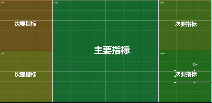 在第一步明确需求,确定数据可视化的主题后,需要根据业务场景抽取关键指标。核心业务指标安排在中间位置、占较大面积;其余的指标按优先级依次在核心指标周围展开。