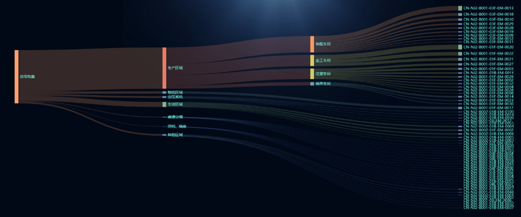 是一种特殊的流图(可以看作是有向无环图)。它用来描述流动情况,图中延伸的分支的宽度对应数据流量的大小,通常应用于能源、材料成分等数据的可视化分析。