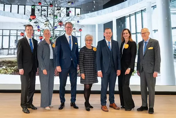 图片:首席执行官Philip Harting(左三)报告了公司上一财政年度的数据。出席会议的还有,管理委员会和家族成员