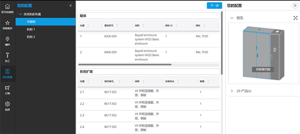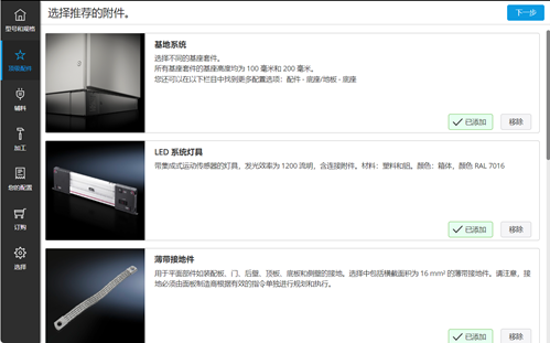 2、选择顶级配件(基地系统、灯具、接地件、手柄、安全门闩、系统型材等)。