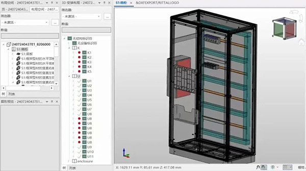 通过RiPanel配置系统完成配置后,我们提供了丰富的技术数据下载,其中就包括Eplan Pro Panel数据(包括独立的机柜项目文件、箱柜3D宏文件)。您可以通过Eplan直接打开选配结果的箱柜,进一步完成三维元器件布局、三维布线、生产工艺文件报表等工作。从而实现从机柜选型到工艺设计的无缝连接。