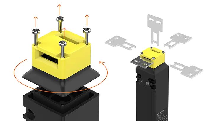 • 可以旋转头部单元以更改操作键的插入方向:可以从5个方向插入操作键(顶部/侧面)