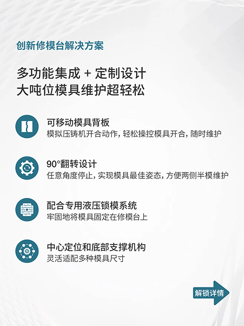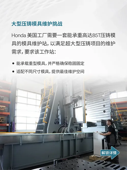 该工作站专为维护重达85T的大型压铸模具而设计,此吨位规模在压铸行业修模台项目中占据了领先地位,印证强大技术实力。