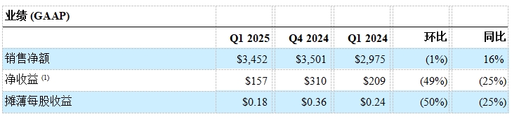 以下2025年第一季度业绩根据康宁合并财务报表中呈现的康宁业务部门报告编制。