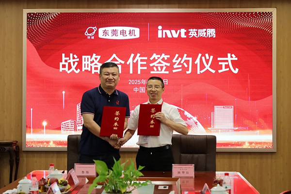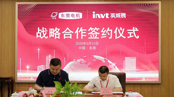 5月12日,深圳市英威腾电气股份有限公司(以下简称“英威腾”)与广东省东莞电机有限公司(以下简称“东莞电机”)在东莞隆重举行战略合作签约仪式。此次合作,标志着双方在产品发展规划、整体解决方案以及品牌发展等多个关键领域达成深度共识,携手推动产品技术创新与市场拓展,为客户创造更多价值。