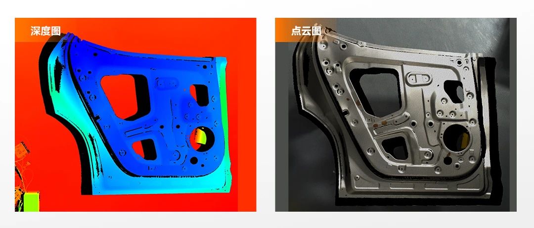 得益于深度图分辨率的提升,Ultra系列也适用于汽车、汽配、零部件等生产环节中的定位测量类应用。通过细腻的点云成像,满足孔径定位、相对位置、尺寸测量等应用,实现亚毫米级精度的定位测量。