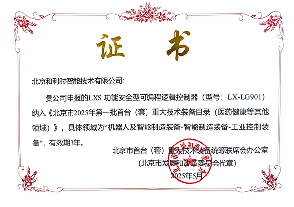 6月6日上午,北京市发展和改革委员会举办首台(套)重大技术装备证书颁发仪式,和利时自主研发的LXS功能安全型可编程逻辑控制器(PLC)成功入选2025年北京市第一批首台(套)重大技术装备目录。