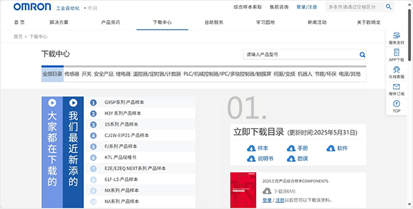 【下载中心】板块汇聚了工程师迫切所需的产品资料、选型指南。全新发布的《2025欧姆龙工控产品综合样本》提供全面、系统的产品选型和技术参考,满足项目规划和选型过程中的关键信息需求。