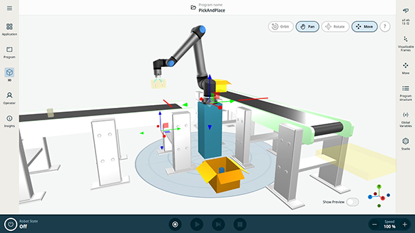 UR Studio让用户能够与优傲机器人的产品组合及各类组件(如托盘、机器和工件)以及末端执行器(包括常用于优傲协作机器人的标准夹具)进行交互。用户可根据自身偏好配置各项元素,还能导入其它组件以模拟实际工作空间。这可以确保最终解决方案能够适配真实环境,从而实现更顺畅的部署并加快投资回报。此外,UR Studio 还能帮助用户尽早发现潜在问题,减少停机时间,并避免因后期调整而产生高昂成本的风险。