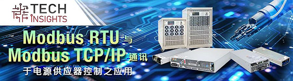 以明纬产品为例,Modbus RTU 应用于电源之间的通讯;而Modbus TCP/IP 则作为电源及终端设备间的沟通桥梁使用,或称为 gateway。