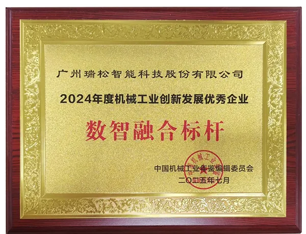 瑞松科技凭借在机器人与智能制造领域的核心优势,以及在推动制造业数字化转型与智能化升级的创新贡献,荣获中国机械工业年鉴编辑委员会颁发2024年度机械工业创新发展优秀企业“数智融合标杆”称号。