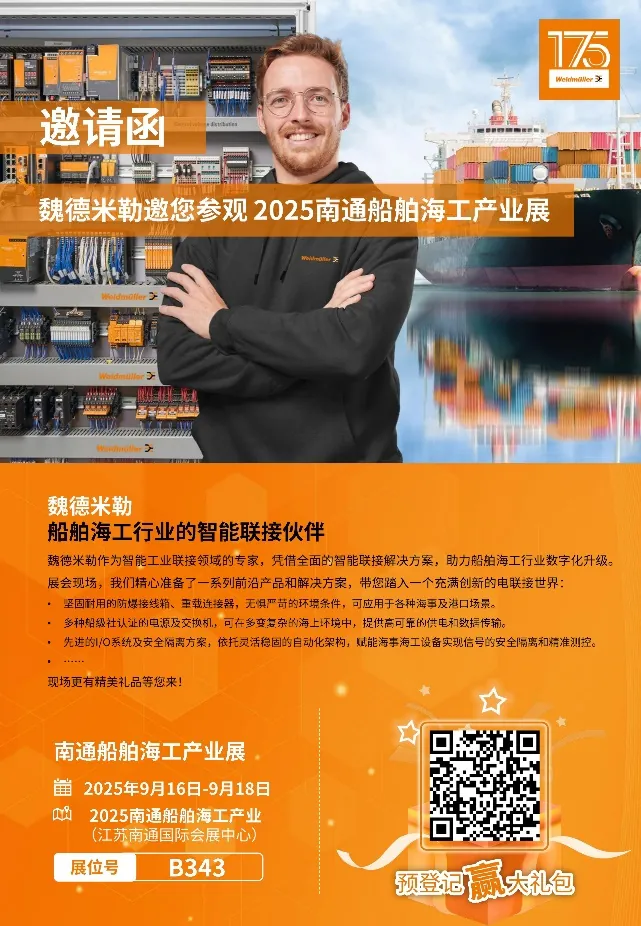 从前沿产品到定制化解决方案,从技术交流到未来畅想——魏德米勒期待与您面对面(展位号:B343),共绘船舶海工智能化发展新蓝图!
