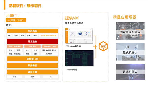 ● 远程运维:集成状态监控与远程升级功能,工程师可通过4G/5G网络实时查看机器人CPU负载、摄像头链路状态,故障时一键推送日志,维护效率提升70%。