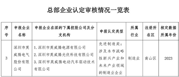 近日,深圳市发展和改革委员会正式公布新一批总部企业名单,英威腾凭借卓越的综合实力与对城市经济发展的积极贡献,成功入选。