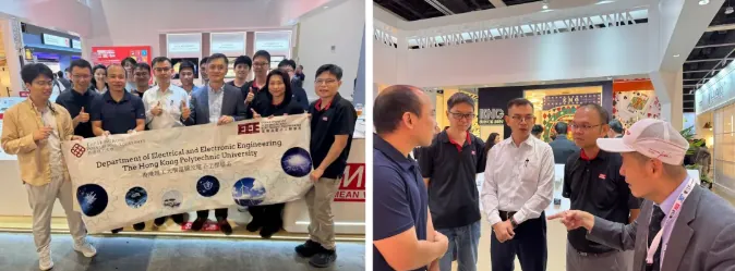 2025年香港秋季灯饰展期间,理大教授率学生参访明纬展位。明纬技服长吴权派向师生们系统的介绍明纬企业文化、产品研发理念与永续发展实践,并邀请师生参与交流晚宴。这种"产学研深度对话”,为后续深入合作奠定一定基础。