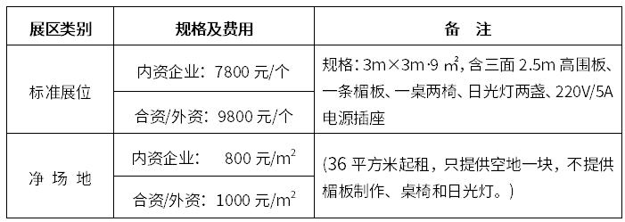 · 最小标准展位9㎡,最小净地展位36㎡,不受理小于9㎡的标准展位。内资企业若展出境内生产合资品牌产品或境内生产国外品牌产品,均按合资/外资标准收费。
