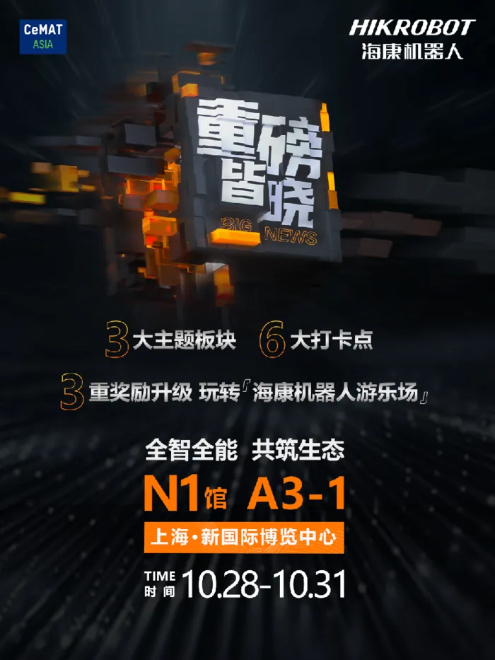 想与新品面对面?欢迎莅临上海2025 CeMAT物流展海康机器人展台(N1-A3-1),或点击下方直播预约。