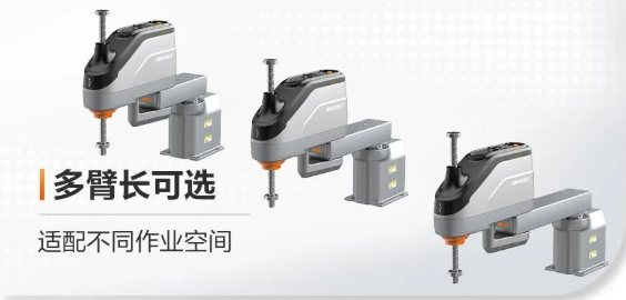 新增3款SCARA机型,进一步丰富产品家族矩阵,适用于锂电、汽车零部件、3C电子食药品、快消品等行业,高效胜任装配、拣选、检测等应用场景。