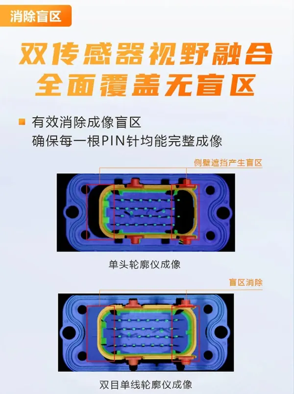 ● 成像干扰:连接器PIN针表面存在杂光影响、视野盲区