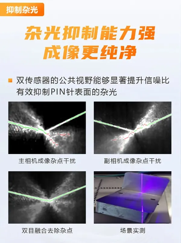 海康机器人PIN针3D质检方案,采用3D双目单线激光轮廓传感器,替代传统的“对头架设“方案,搭配自研VM3D算法平台,内置PIN检测专用算子,能够进行在线非接触式实时检测。