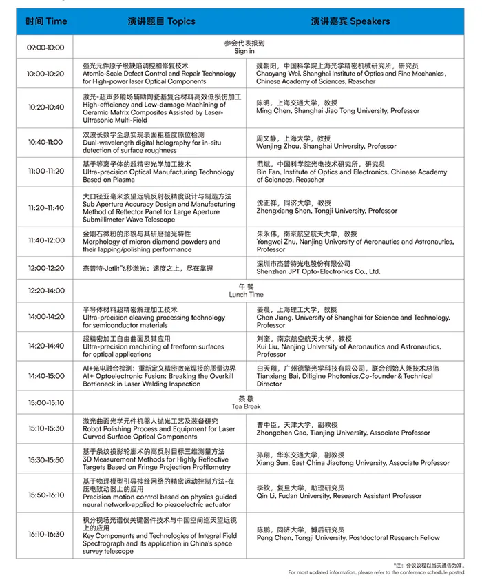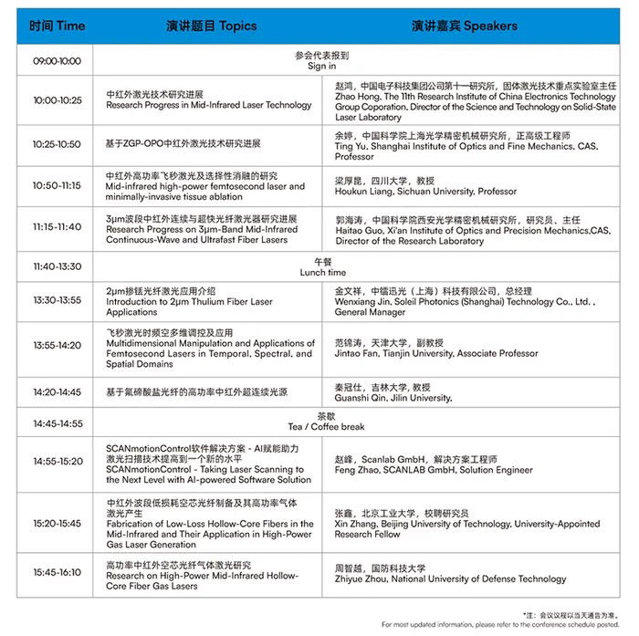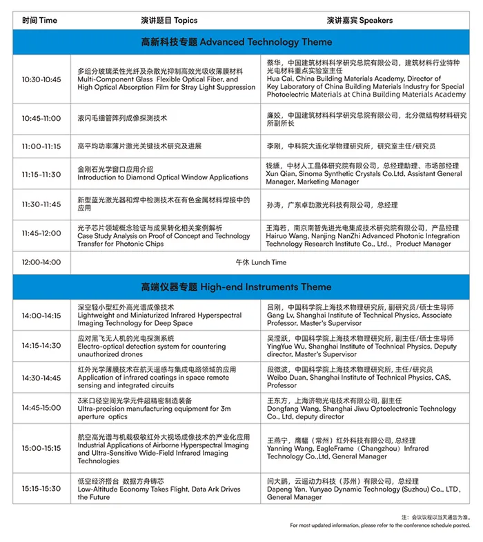 本届大会议题丰富,聚焦行业热点话题,主题包括计算光学成像技术、超构光学表面技术、智能光学制造技术、集成电路精密检测技术、红外探测技术、中红外激光技术、激光智能制造技术、激光雷达技术等最新科技研发成果和进展,同时大会将聚焦生物光子、光通信、新型显示、智能汽车、半导体、人工智能、新能源等应用场景,更有光学主题培训班的加入,为光电人带来更多专业课程。