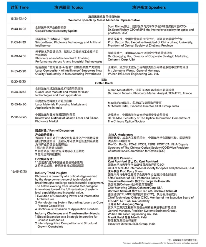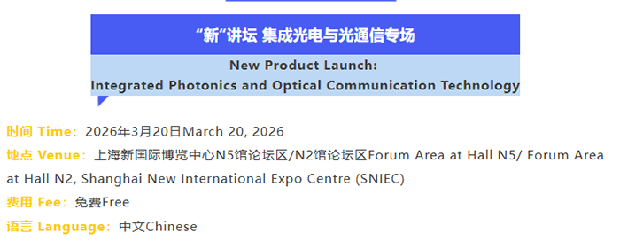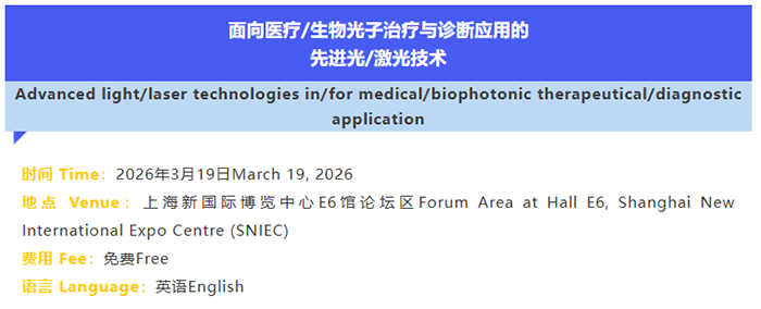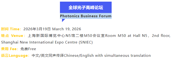 光学技术大会 PHOTONICS CONGRESS CHINA 将与慕尼黑上海光博会共同于2026年3月18-19日在上海新国际博览中心举办。