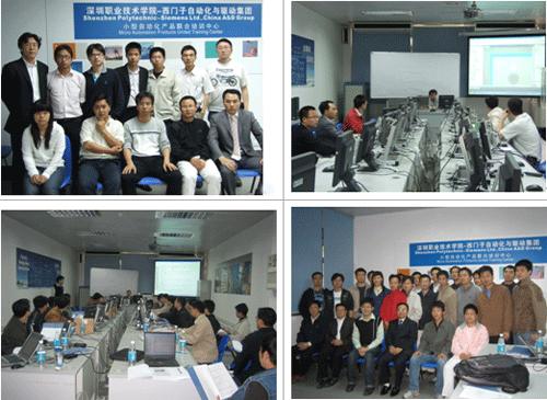 深圳职业技术学院-西门子小型自动化产品联合培训中心现拥有西门子先进自动化技术联合示范实验中心及西门子全集成自动化、过程控制、计算机监测与控制实验室,涵盖西门子S7-200/300/400 PLC,HMI设备等西门子自动控制设备。2007年10月,中心与西门子(中国)有限公司自动化系统部签定合作协议,联合成立了西门子小型自动化产品培训中心,并具备发放西门子公司授权的培训证书的资格。为此我们定期组织 WinCC Flexible软件的专题培训以及 S7-200PLC的专题培训,为广大用户和技术爱好者提供了一个良好的交流和学习的机会。我们也期待更多的技术人员和产品人员参与到该培训项目中来!
