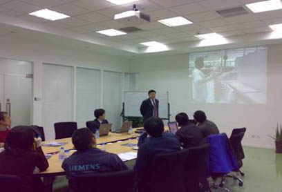 (西门子自动化与驱动集团工控机和电源产品经理在四通公司现场讲解)