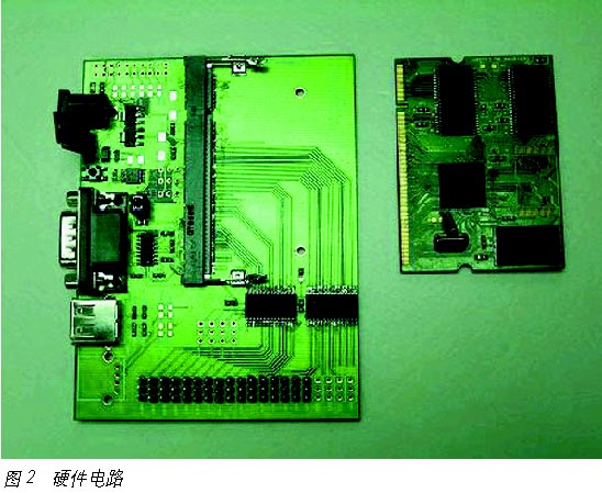 见图2,一块核心母板,配备CPU、16MB的NOR Flash、64MB的NAND Flash、32MB的SDRAM,并设置系统从NAND Flash启动;一块外设电路板,负责系统