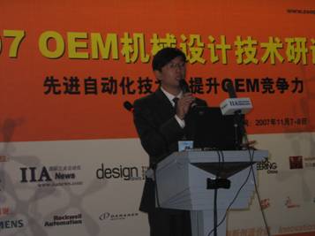 在展会同期,皮尔磁在11月7日参加了2007OEM机械设计技术研讨会,皮尔磁产品经理黄之炯先生作了题为“机器的安全与防护”的演讲,除了介绍皮尔磁的安全产品在机器上的应用外,还介绍了有关安全理念以及欧洲机器指令、CE认证、安全标准等相关知识,为现场的观众上了一堂生动形象的安全课。为众多的听众解答了技术上的困惑与问题,树立了皮尔磁“安全大使”的良好形象。