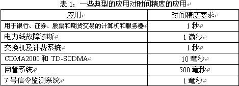 目前在国际基准和国家基准层面所使用的主要是铯原子钟。中国计量科学研究院建立的冷原子喷泉铯原子钟其频率复现性为5×10-15,已接近国际先进水平。其实,在应用层面上并不需要国家基准这样高的时间和频率准确度。不同的应用对准确度的要求是不同的,表1列举了一些典型的应用对时间准确度的要求(应用界面时间相对于UTC时间的误差)。