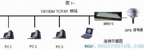 中新创科的DNTS时间服务器是GPS时间同步技术和互联网时间同步技术的结合。采用19英寸1U机架式设计,内置GPS接收机,以GPS卫星时间为标准时间源,支持NTP协议(V2.0/V3.0/V4.0)和SNTP协议。能够为局域网内成百上千的计算机、路由器等提供时间校准。下图1为网络时间服务器的应用方案: