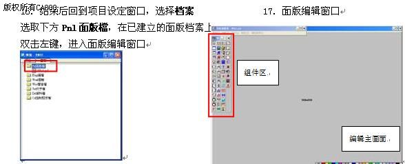 19. 选择绘画 Widget 20. 从已有组件库中选择适当组件,如DI/O选择按钮或指示灯,AI/O为数字