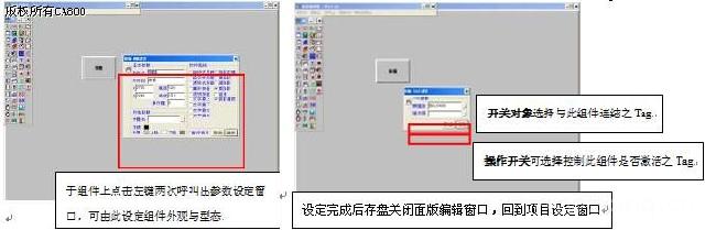 18. 于组件区选择按钮 19. 在组件上点击鼠标右键,呼叫Tag设定窗口