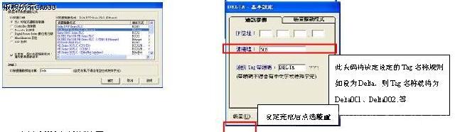 7. 选择Delta DVP Series PLC (Ethernet)为装置驱动程序模块 8. 设定IP地址,通讯Tag带头码