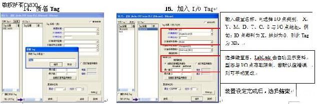 12. 在IO装置上按右键,选择内容 13. 可在内容设定窗口中新Tag