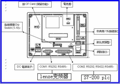 C.利用屏的双口双驱功能和plc,屏同时通讯,见上图。用通讯方式实现电机的命令控制和频率给定,省去很多硬接线麻烦,简化了控制系统结构。各工艺参数设定,实时数据显示,报警提示等都可以在人机上直接操作,真正体现了人际交互功能。