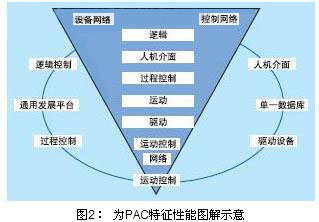 使PLC增加视觉、运动、仪器和分析功能等全方位的自动化技术,显而易见是望尘莫及。必须希望同时拥有PC的功能和PLC(可编程控制器)的可靠性的最佳方案,则可编程自动控制器(PAC-Programmable Automation Controller)就是这样的平台,它能最佳结合PC和PLC两者的优势(见图1所示),它提供了开放的工业标准,可扩展的领域功能,一个通用的开发平台和一些高级性能。这是当今设计与建立控制系统发展的需要,属工业自动化领域中比较完善的新兴控制器。