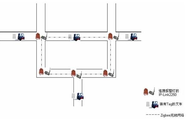 叉车在企业的物流系统中扮演着非常重要的角色,然而在车辆的行驶过程中由于受货物高度以及周围环境的影响,车速不能很快。特别是叉车与行人分别处于不同的岔口,事故更是频频发生,以至于叉车的工作效率得不到很好的发挥。基于全新的ZigBee网络的无线定位技术可以很好解决上述的问题,当叉车临近岔口时路口有声光报警,提醒周围的行人注意安全,这样不但叉车的工作效率达到了提高,同时也保证了人生财产的安全。
