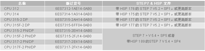 | 新一代固件版本为V3.0的S7-300系列的CPU 312, 314, 315-2 DP和固件版本为V3.1,带有交换功能的两个以太网接口的CPU315-2PN/DP,CPU317-2PN/DP的标准型和故障安全性CPU已经发布,这些CPU都有新的订货号。 |