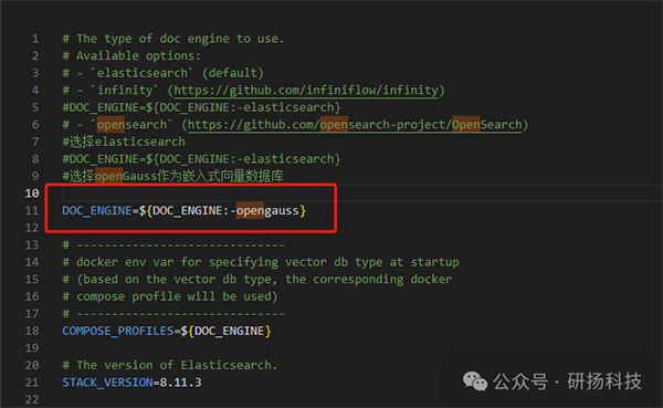 修改 .env 文件,将默认的文档存储引擎指向OpenGauss
