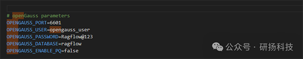 为使RAGFlow默认支持并连接到OpenGauss数据库,需要对源码进行必要的适配。主要改动集中在配置文件和数据库初始化脚本上。