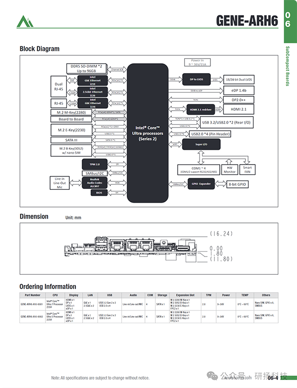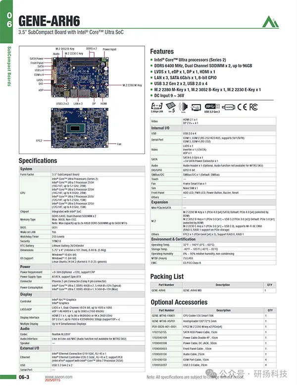 GENE-ARH6搭载英特尔® 酷睿™ Ultra 200H/200U系列处理器(代号Arrow Lake)精英阵容,结合AAEON 3.5英寸超紧凑主板平台一贯的工业级坚固设计,使系统集成商能够优化从先进自主机器人到AI驱动机床工作站在内的各类工业场景应用。