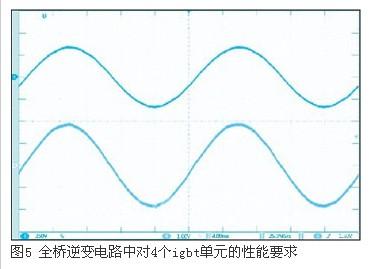 图5所示为一个单相光伏逆变器的典型全桥逆变电路,为尽可能地降低igbt的损耗,有时pwm控制策略使上桥臂igbt1/igbt3的开关频率设定为电网频率(例如50hz),而下桥臂的igbt2/igbt4则工作在较高的开关频率下,来实现输出正弦波。这样的工作模式对全桥逆变中的4个igbt单元的性能要求是不尽相同的。因为上桥臂工作在工频开关频率,所以对igbt1/igbt3要求具有低的饱和压降vce(sat),以降低系统的通态损耗,同时尽量降低二极管的反向恢复损耗,要求二极管具有快的恢复时间或者采用sic二极管;因为下桥臂的igbt单元工作在高频下,所以对igbt2/igbt4要求尽可能快的关断速度以降低开关损耗。