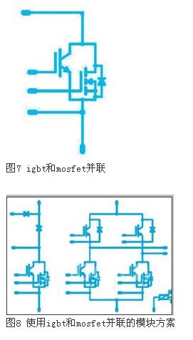 对于这种模块的驱动,可以采用多种方案,如采用两个独立的驱动器分别驱动igbt和mosfet,或者采用一个驱动器分出两路独立信号分别驱动igbt和mosfet,都是可行的解决方案。