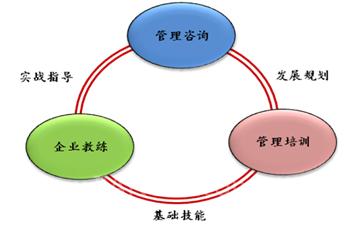 咨询服务、技能培训、企业教练三者互为补充、互为支撑、三位一体