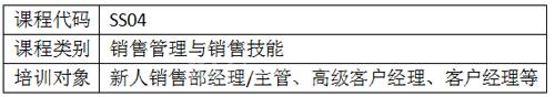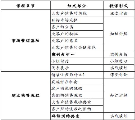本课程的内容包括描绘大客户特征,帮助销售人员建立正确的销售流程,掌握挖掘大客户需求的技能,建立和客户关键人的信任及合作关系,制定有竞争力的成功策略,以最有价值的解决方案赢得大客户、实现互利共赢。