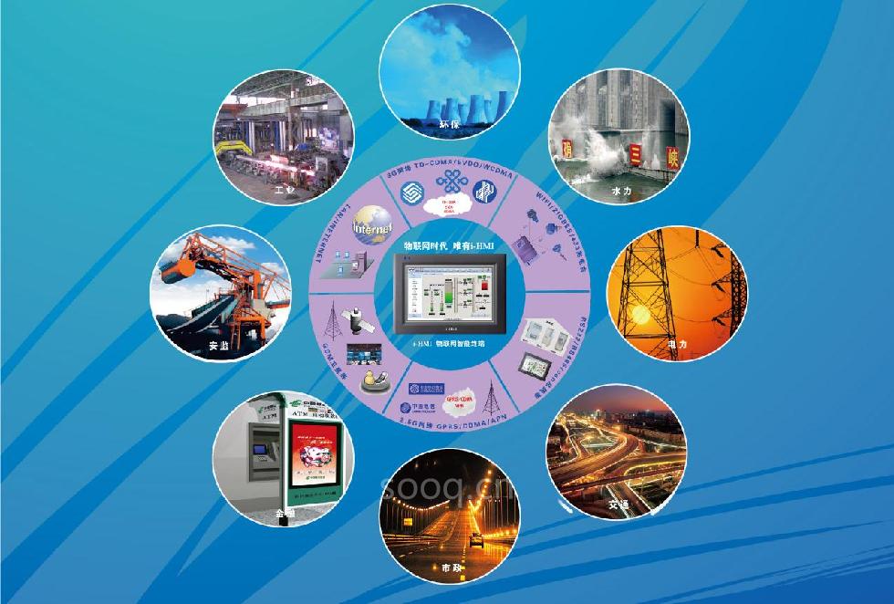 工业人机界面Human Machine Interface,简称HMI,又称触摸屏监控器,是一种智能化操作控制显示装置。工业人机界面以特殊设计的计算机系统32位RISC CPU芯片为核心,在STN、TFT液晶显示屏或EL电发光显示器上罩盖有透明的电阻网络式触摸屏。触动屏幕时,电阻网络上的电阻和电压发生变化并由软件计算出触摸位置。