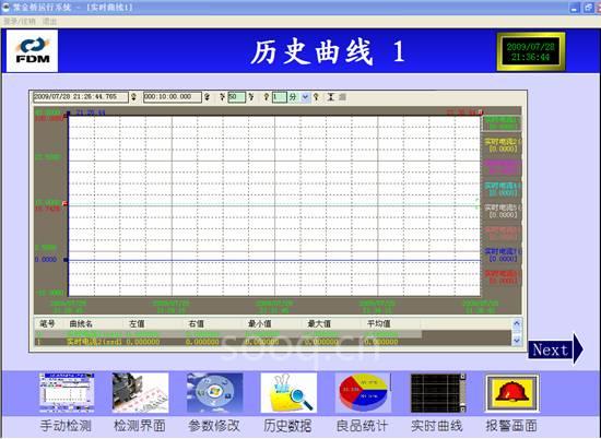 历史曲线的查看,可以查看每个工位的实时测量数据,包括最大值、最小值、平均值等。