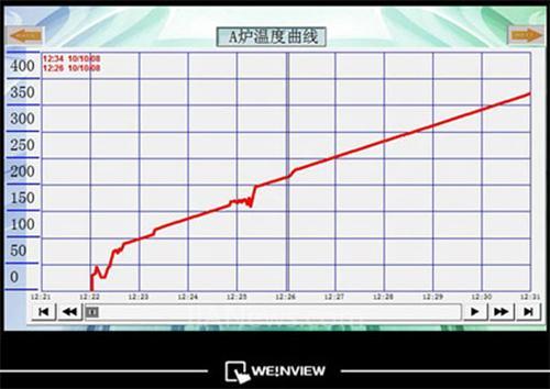 本系统采用WEINVIEW MT6100i型号触摸屏,该型号为10”宽屏,400MHz CPU。128M 超大容量Flash,可以实时显示温度曲线,历史温度曲线,实时事件,历史事件,历史数据,工艺流程。